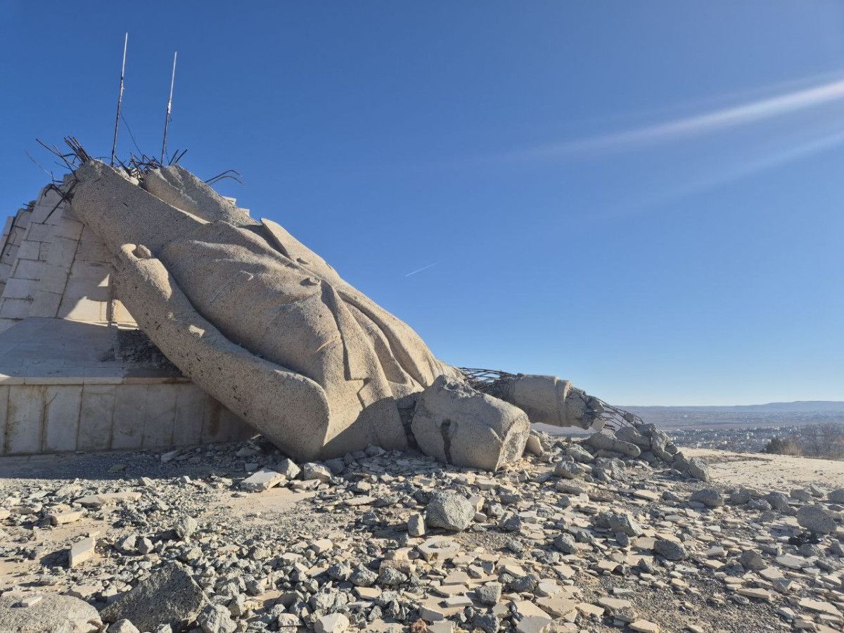 Parçalanmış haldeki heykel enkazı, son yıllarda ülkeye hükmeden bir dönemin kapanışının ve Suriyelilerin özgürlük mücadelesindeki kararlılığının maddi bir kanıtı olarak varlığını sürdürüyor.